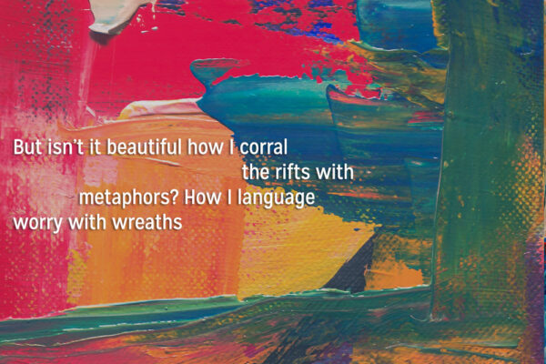 “But isn’t it beautiful how I corral / the rifts with / metaphors? How I language / worry with wreaths”