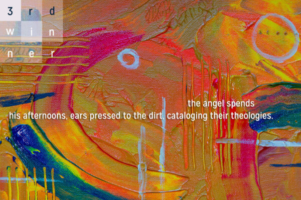 “the angel spends / his afternoons, ears pressed to the dirt, cataloging their theologies.”